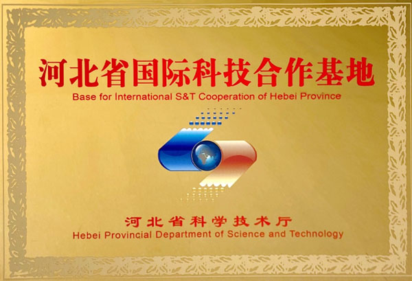 获得河北省科学技术厅“河北省国际科技合作基地”称号