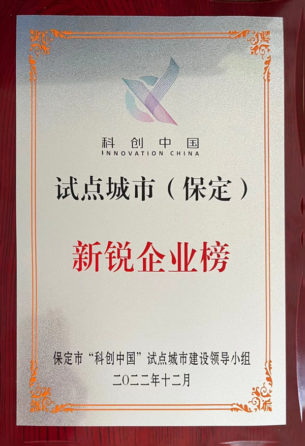 保定市”科创中国“试点城市建设领导小组”新锐企业榜“